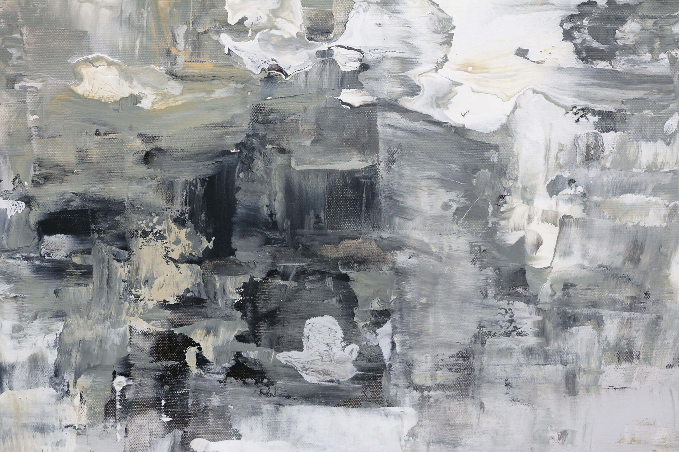 Aus der Materialität selbst erwächst Tiefe. Sie entsteht nicht durch Illusion, sondern durch Verdichtung – durch das Ineinanderfließen von Dichte und Transparenz, von Glanz und Stille. Das Auge tastet über diese Zonen wie über geologische Formationen, in denen Zeit sedimentiert ist.