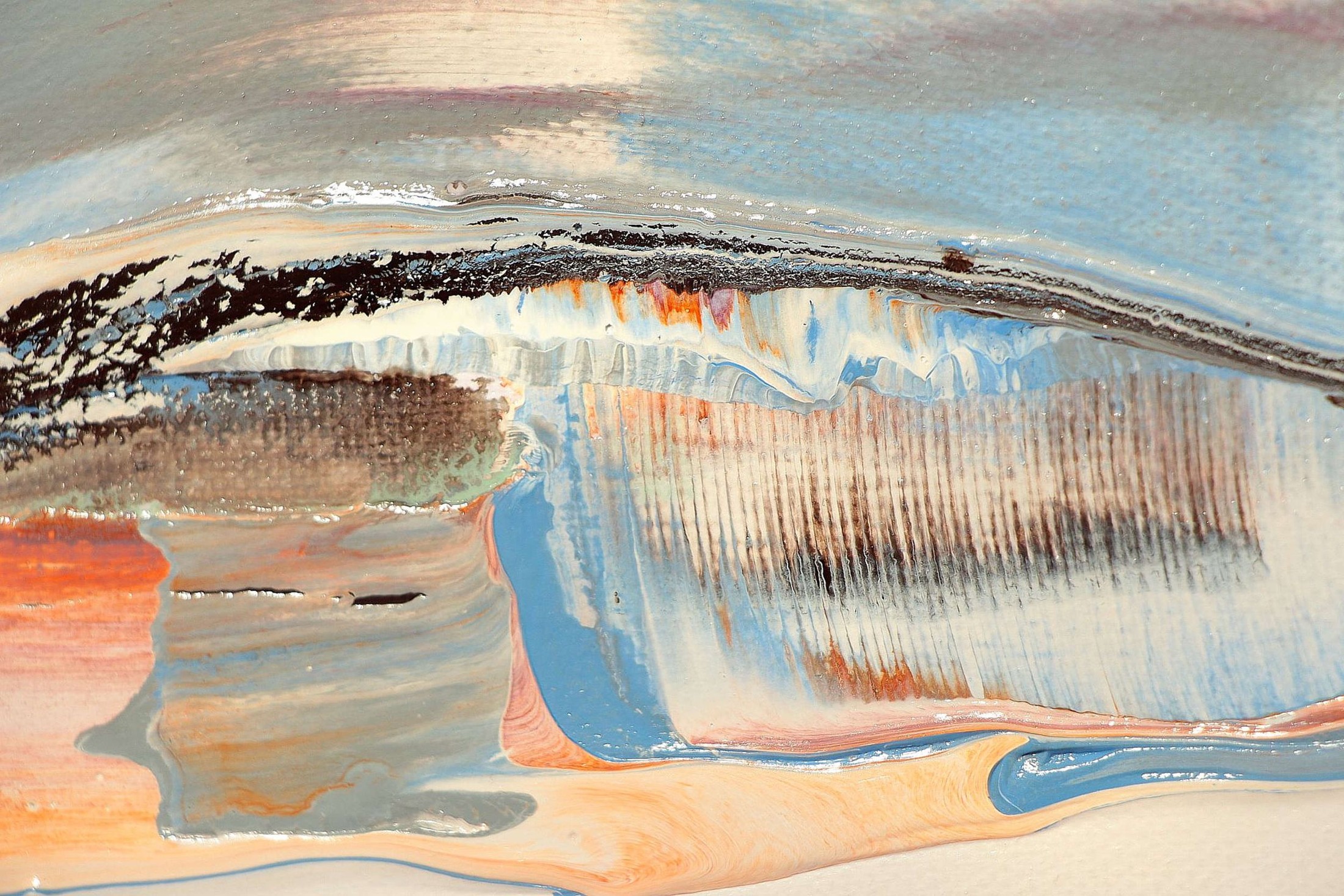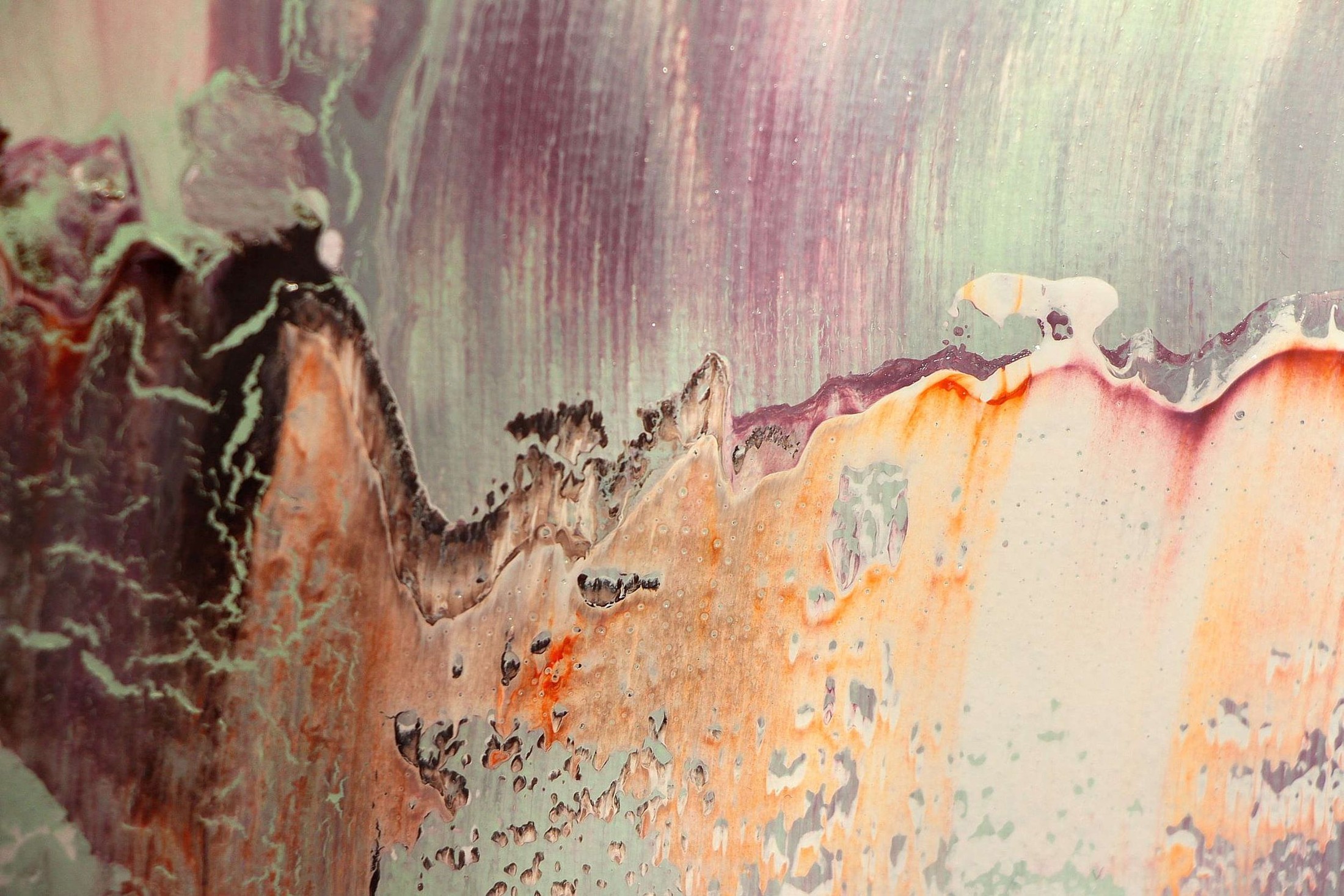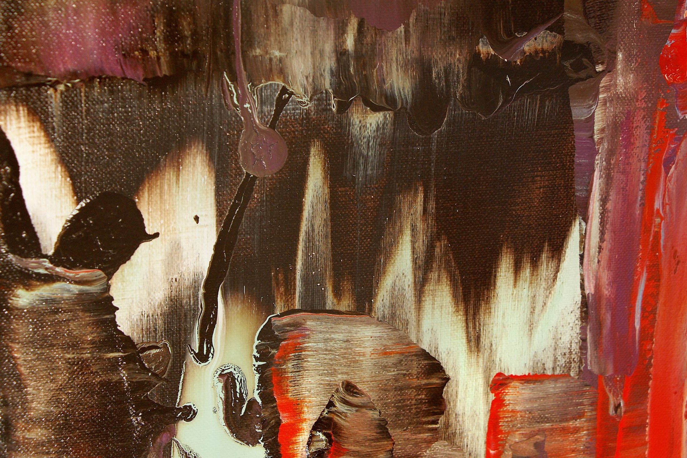 Jede Oberfläche birgt Spannung: plastisch herausragende Schichten, dünnhäutige Lasuren, vibrierende Übergänge, die wie Resonanzkörper wirken. CORE ist ein Ort der Berührung mit dem Wesentlichen, ein visuelles Echo von inneren Strukturen, in dem Wandel und Stabilität, Intensität und Stille gleichzeitig präsent sind.