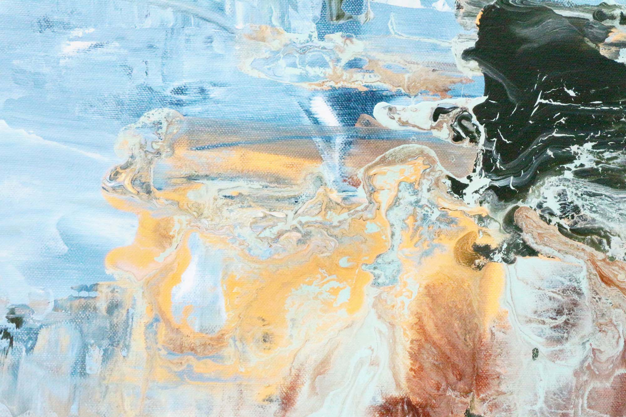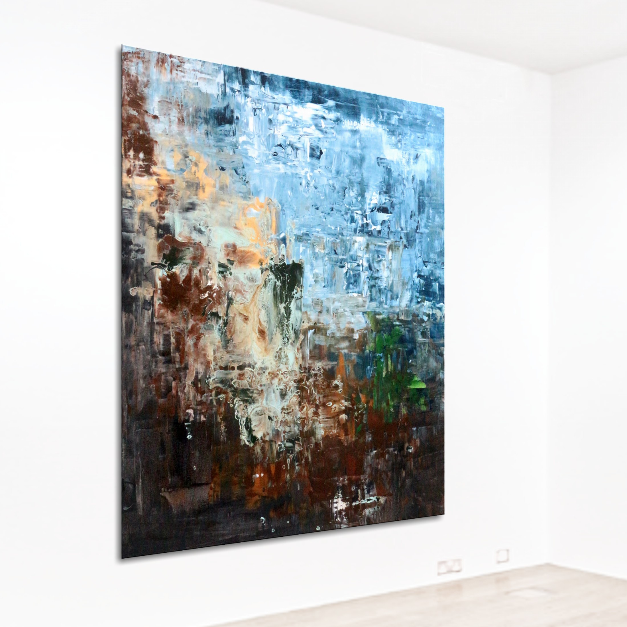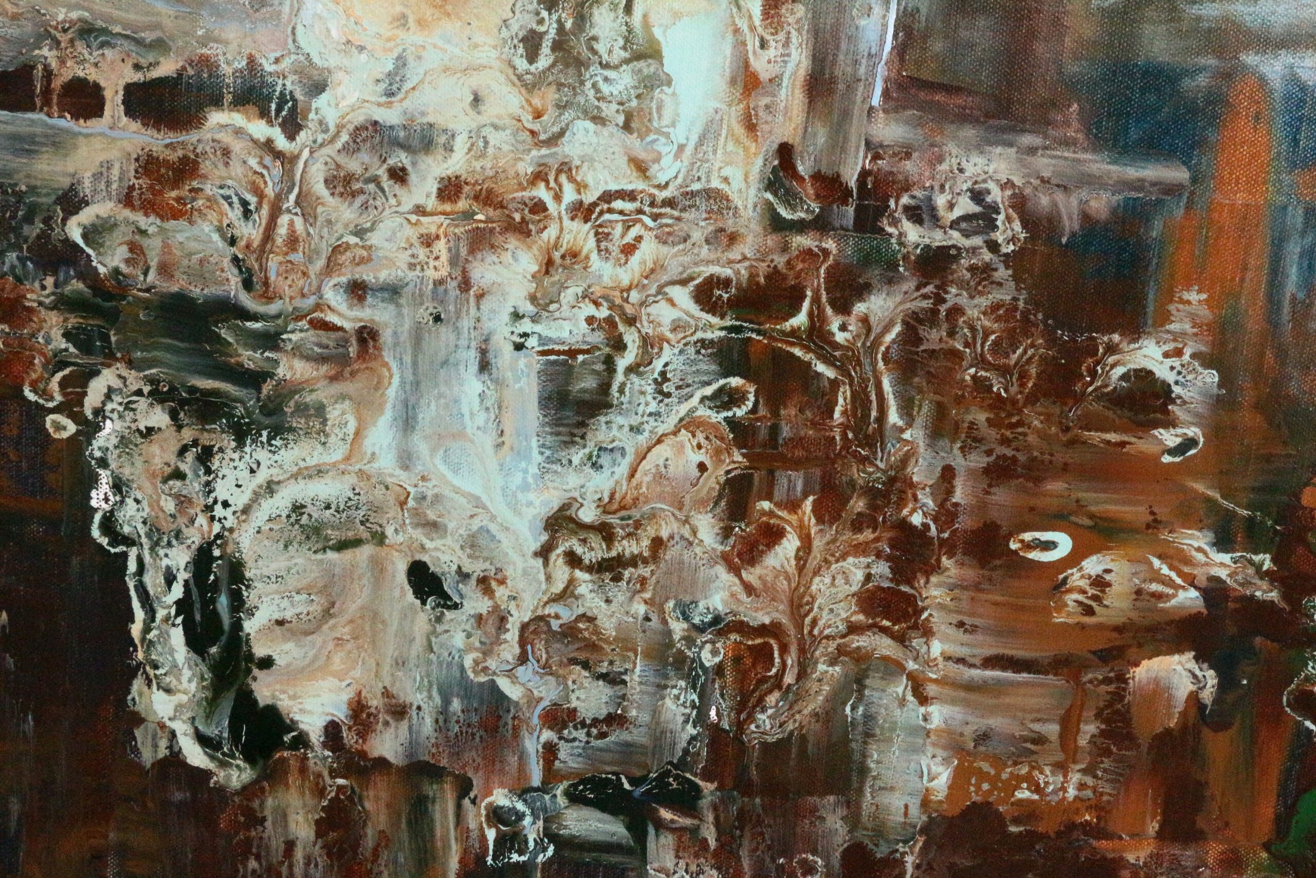 Aus der Materialität selbst erwächst Tiefe. Sie entsteht nicht durch Illusion, sondern durch Verdichtung – durch das Ineinanderfließen von Dichte und Transparenz, von Glanz und Stille. Das Auge tastet über diese Zonen wie über geologische Formationen, in denen Zeit sedimentiert ist.