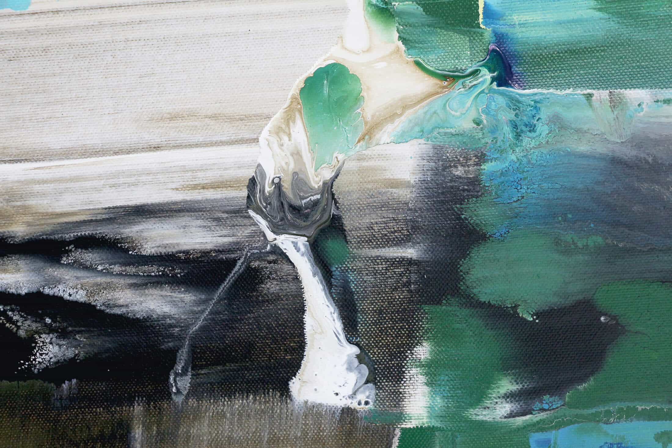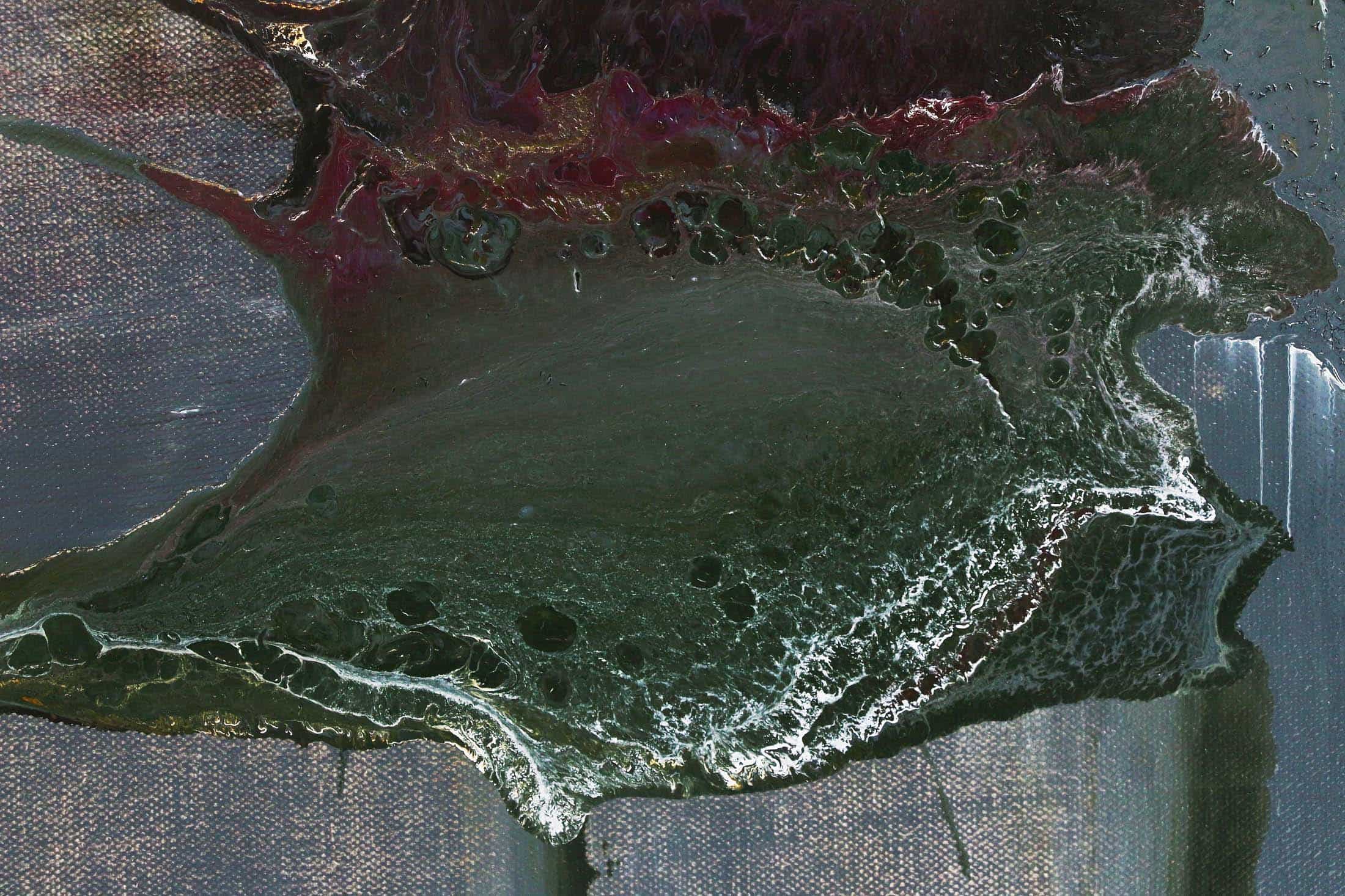Detailansichten zeigen die Materialität, Schichtungen und Oberflächenstrukturen der Arbeiten von Iven Orx & Aaron Vinn. Jede Perspektive offenbart subtile Dynamik, Verdichtung und Resonanz der Werke, die Präsenz und Aura unmittelbar erfahrbar machen.