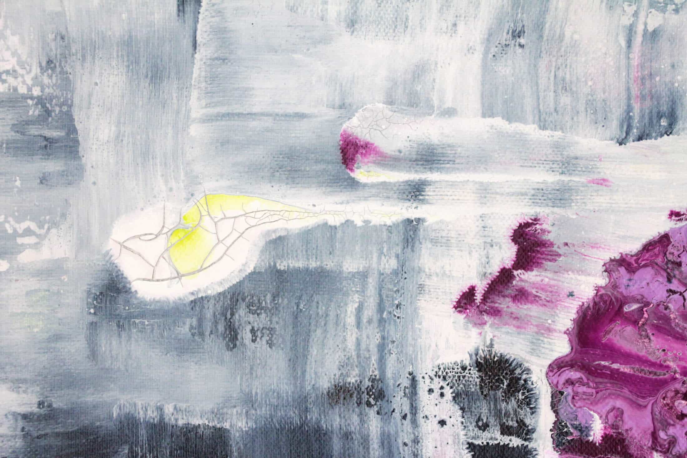 Mit Seam erschaffen Iven Orx und Aaron Vinn imaginäre Topografien, in denen sich das Elementare verdichtet. Farbschichten bäumen sich an der Leinwand auf, brechen auf, lösen sich und formieren sich erneut. Ihre Werke sind Gebilde aus Bewegung – Echos der Erdenzeit, eingeschrieben in farbige Schichten, die sich ablagern und wieder aufbrechen. Licht durchdringt die Oberflächen, lässt Reliefs und Spuren aufscheinen, als hätte der Wind selbst an ihrer Gestalt mitgewirkt. Es sind Chiffren eines beständigen Werdens, ein Fließen und Vergehen, das sich in jeder Nuance der Textur spiegelt.