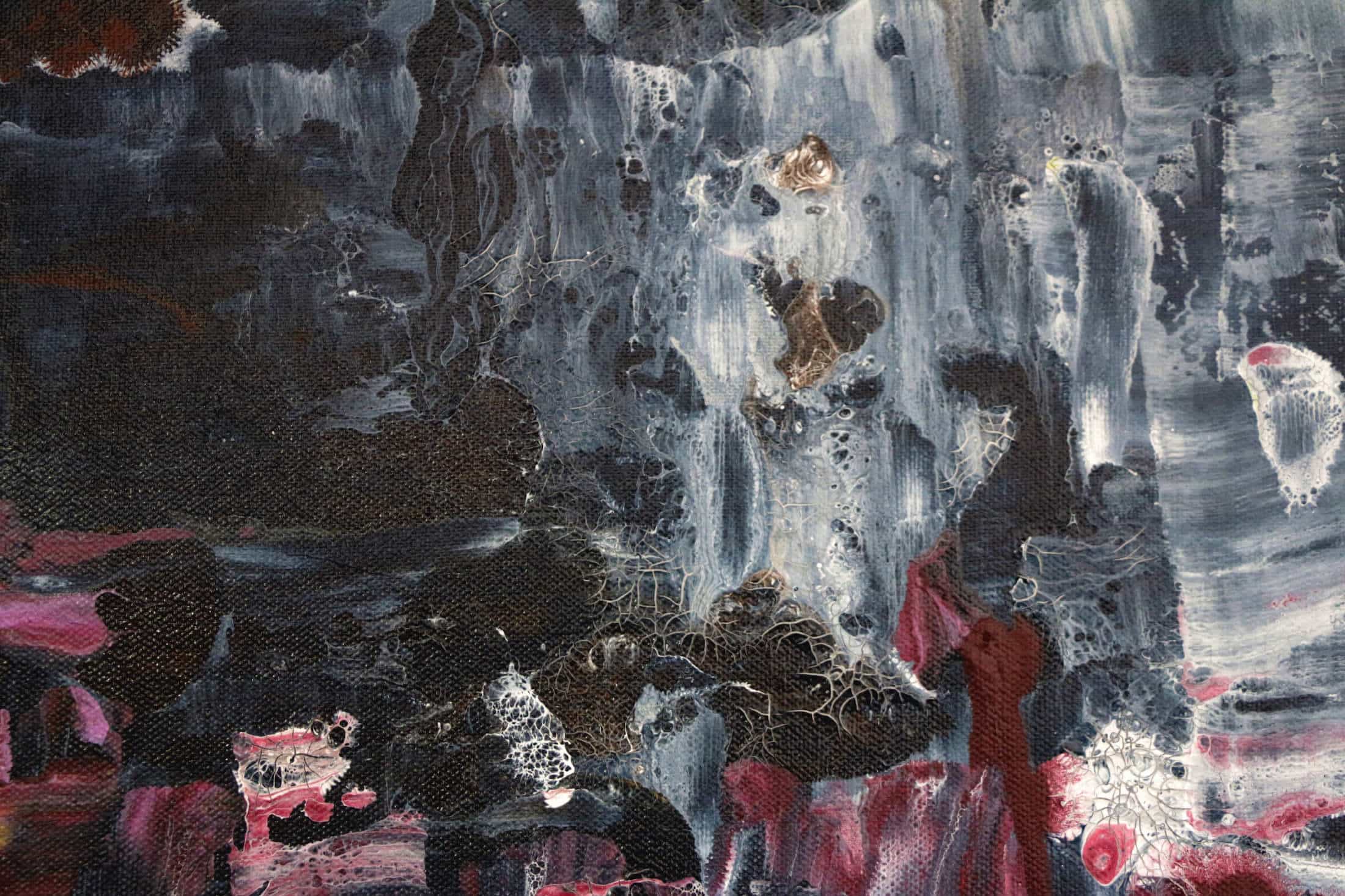 Iven Orx & Aaron Vinn, THE BLACK WATERFALL, 2023, Farbe auf Leinwand, 130 x 140 x 3 cm