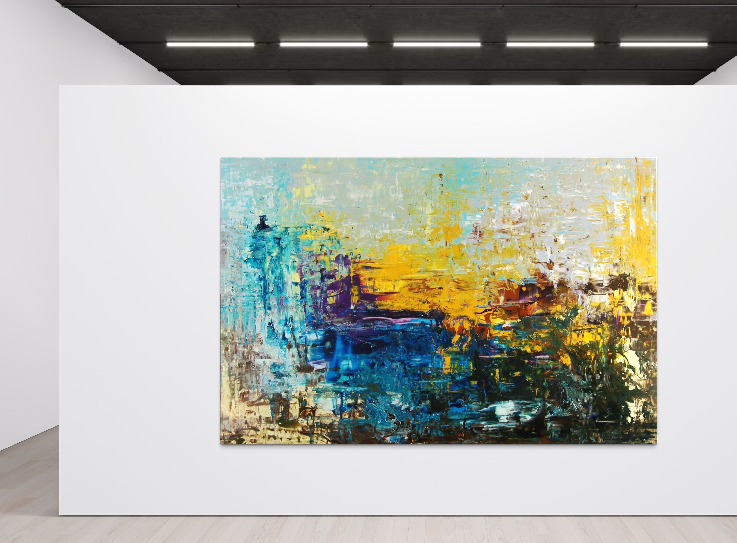 Iven Orx & Aaron Vinn, ETHEREAL AXIS, Werkgruppe SEAM, 2023, Farbe auf Leinwand, 145 x 220 x 3 cm